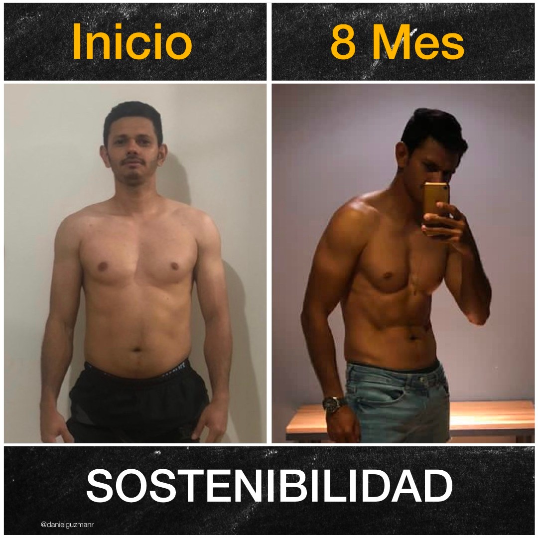 "He logrado transformar mi cuerpo sin contar calorías y haciendo ejercicio desde mi casa. Más de un año de comer y hacer ejercicio de forma divertida y sostenida. Gracias Daniel por todo lo que me has ayudado".